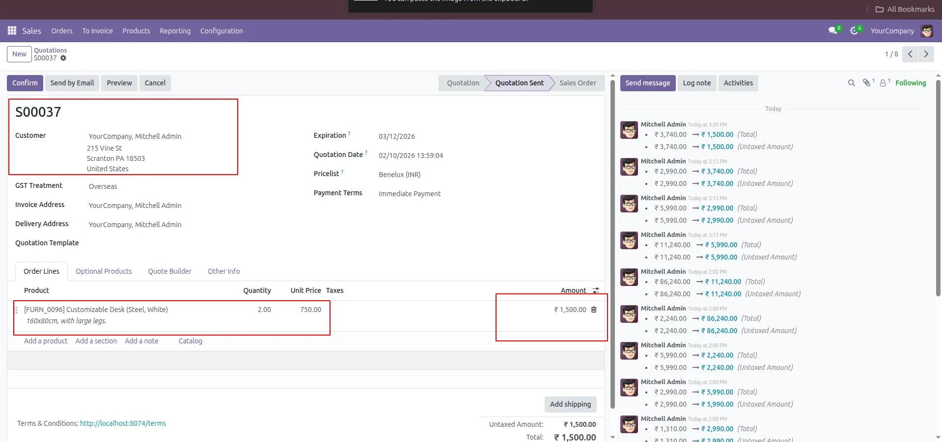 Yes, all updates are instantly synchronized with the Odoo backend quotation for accurate data management.