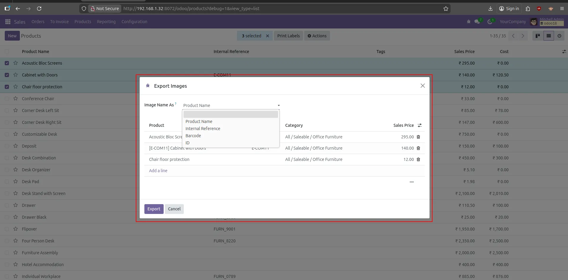 Can I rename exported product images in Odoo?