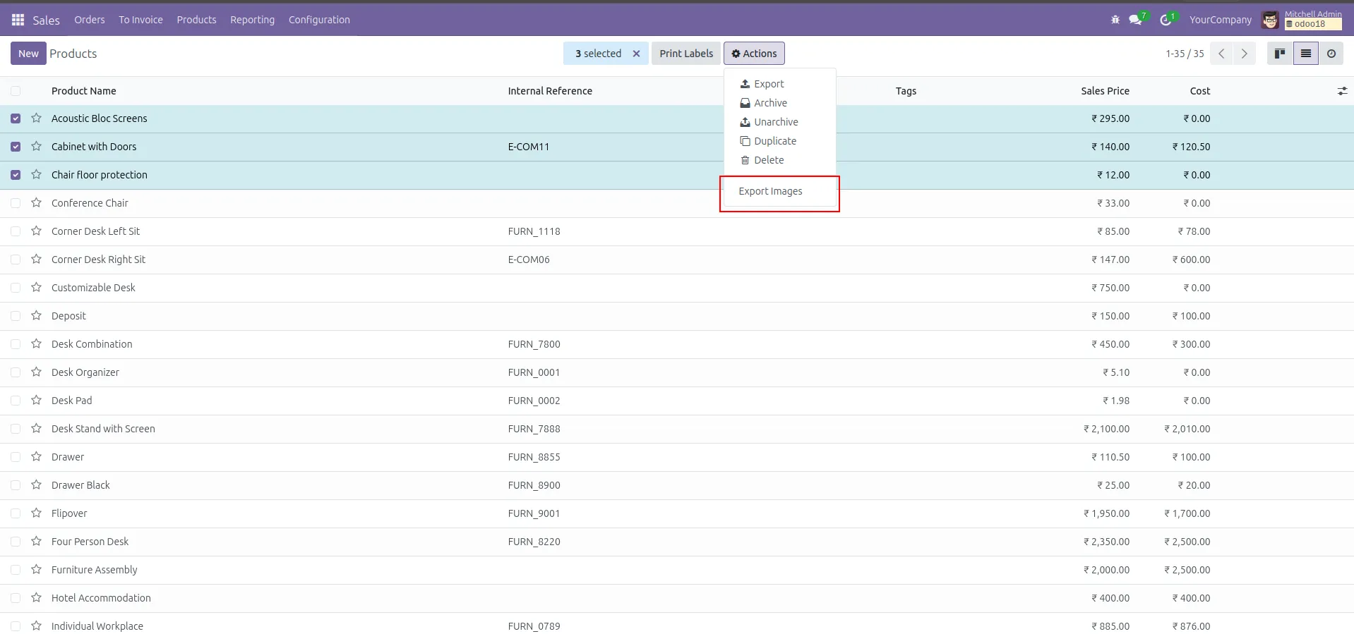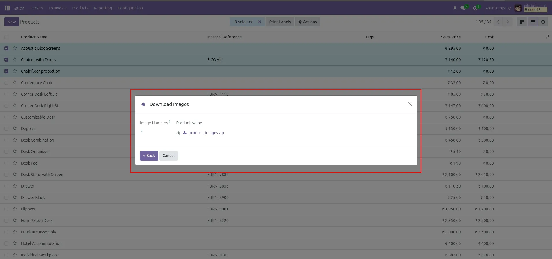 Can I download product images in Odoo in bulk?