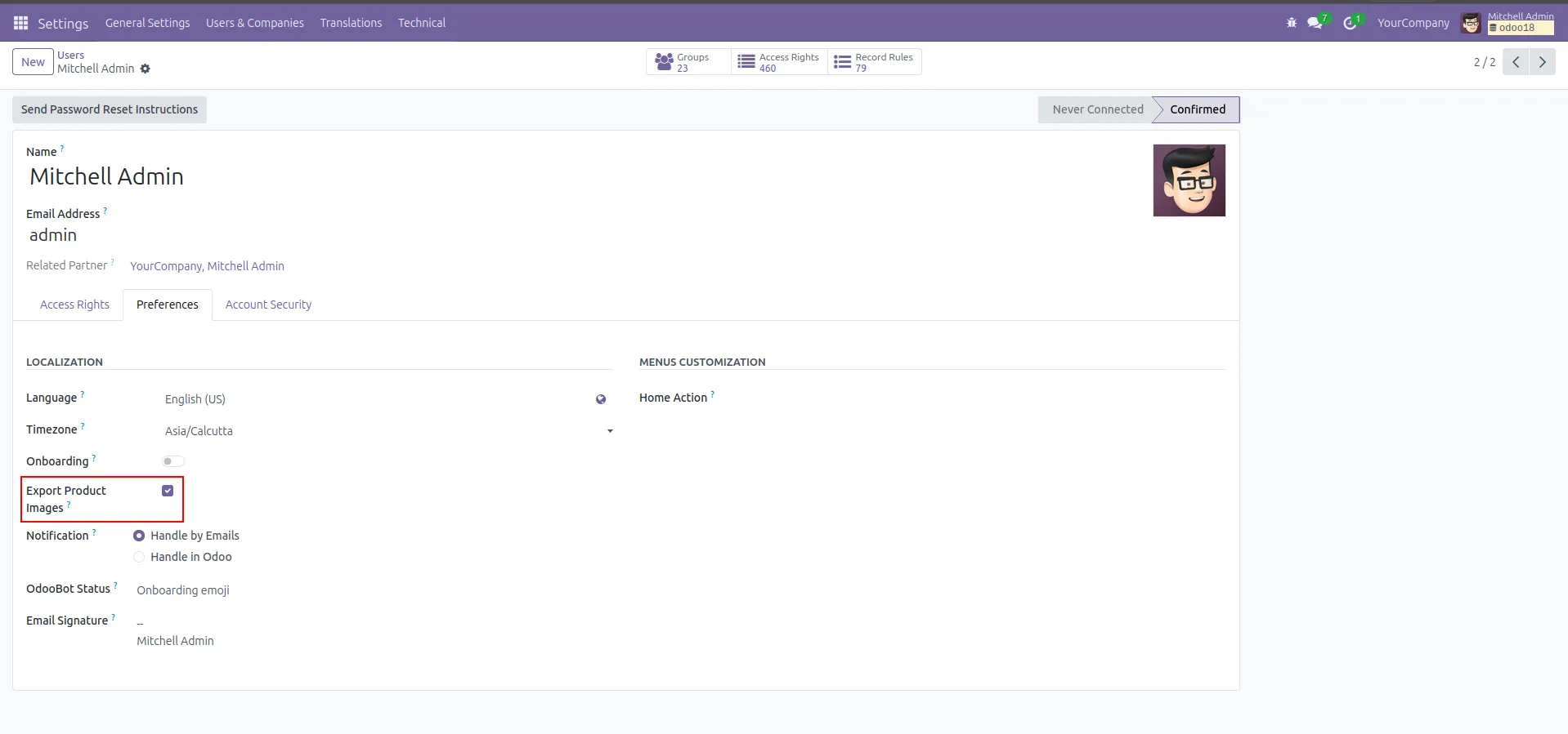 To ensure controlled access, the export feature can only be used when the required user setting is enabled. This adds an extra layer of security while allowing teams to export product images in Odoo more efficiently.