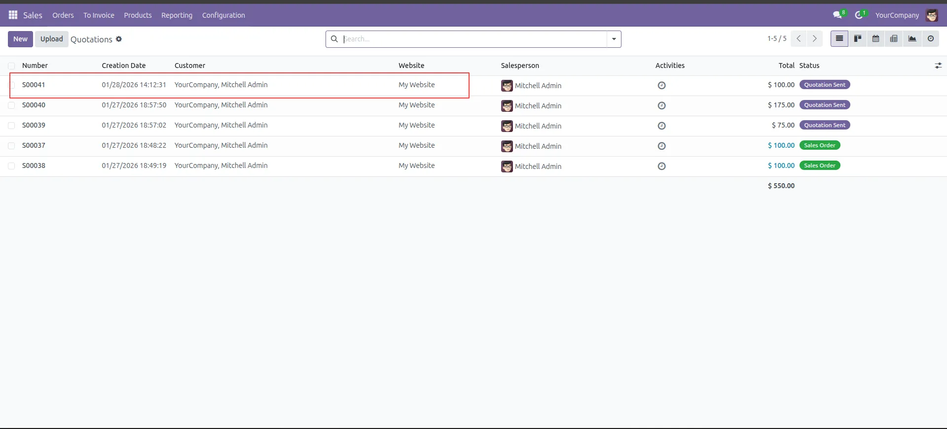 10.Go to the backend Sales menu to see the newly created order in the list.